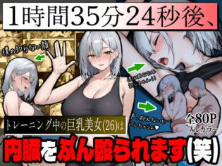 エロ漫画 エロ同人『1時間35分24秒後、トレーニング中の巨乳美女(26)は内臓をぶん殴られます(笑)』丨d_709868